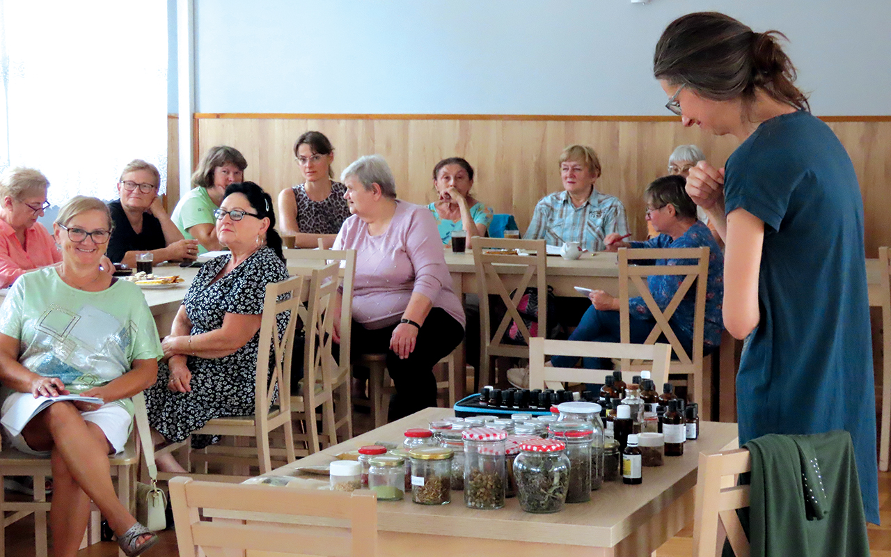 W poniedziałek w strażnicy OSP w Ustroniu Lipowcu odbyło się ponad dwugodzinne spotkanie warsztatowo-wykładowe z Magdaleną Mildner z Brennej. Wzięły w nim udział członkinie Koła Gospodyń Wiejskich w Lipowcu, ale też panie, które wyraziły chęć przystąpienia do projektu „Poprawa zdrowia seniorów w Lipowcu”. Realizuje go grupa inicjatywna „Aktywne kobiety z Lipowca” której człon tworzą aktywistki z KGW z przewodniczącą Olgą Kisiałą, ale i inne panie, chcące działać poza strukturami Koła. Poniedziałkowe spotkanie poświęcone było tematyce wzmacniania organizmu z wykorzystaniem ziół i fitoterapii oraz profilaktyce chorób infekcyjnych w okresach zwiększonej zachorowalności. Mildner jest zielarką, fitoterapeutką, dietetyczką, naturopatką i przez ponad 2 godziny przekazywała cząstkę swej bogatej wiedzy o roślinach i ich cudownych właściwościach. Słuchaczki wąchały kwiaty, liście, pączki krzewów, olejki, octy i hydrolaty. Poznawały składy mieszanek na grypę, anginę, bóle stawów i inne przypadłości. Notowały przepisy na nalewki, octy, herbatki i maści. Niezwykłe spotkanie, po którym nigdy już na zwykłe rośliny, czasem nawet chwasty, nie spojrzymy tak samo. Fot. M. Niemiec