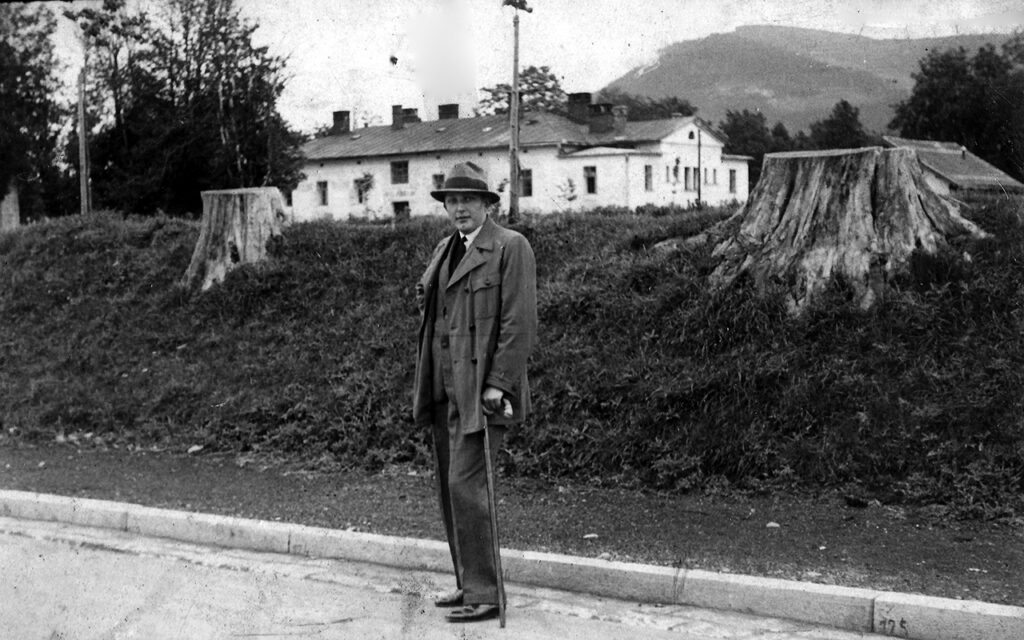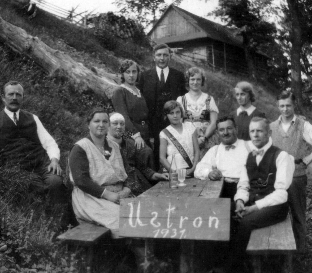 Dochodzą mnie słuchy, iż Czytelnicy dopytują się o romantyczne, a zarazem tragiczne historie, dlatego dziś poruszymy przejmujący wątek sprzed niemal 100 lat, spowity w pejzaże dawnego Ustronia. Bohaterem opowieści jest Paweł Kozieł, młodzieniec z Małej Cisownicy, który po śmierci rodziców Anny i Józefa Kozłów objął ojcowiznę. Związany był jednak z Ustroniem, tu uczęszczał do szkoły powszechnej (obecnie SP 2), aktywnie udzielał się w Związku Polskiej Młodzieży Ewangelickiej, a swe życie zawodowe związał z Bankiem Ewangelickim, mieszczącym się w budynku Prażakówki. Tam, mimo młodego wieku, szybko awansował na stanowisko kierownika, przyczyniając się do rozwoju placówki. Na pierwszej fotografii widzimy Pawła nad stawem hutniczym, okolonym groblą, zwaną romantycznie w XIX w. „promenadą wielkopiecową nad ustrońskim jeziorem”. Wraz z powstaniem huty ośrodek ten, wzorem innych arcyksiążęcych założeń, otaczały strzeliste topole włoskie. Końcem XIX w. topole zostały zdziesiątkowane przez zarazę, dlatego też zastąpiono je kasztanowcami, harmonizującymi z innymi drzewami tego gatunku, posadzonymi w 1858 r. przed Hotelem „Kuracyjnym”. Ale i one uległy na początku lat 30. XX w. chorobie, dlatego też na zdjęciu widzimy już tylko ich ścięte pnie. W tle dostrzegamy natomiast wspomniany hotel, którego urocza wówczas bryła, po podniesieniu na piętro południowej części w 1910 r., przypomina już taką, jaką pamiętamy sprzed rozpoczęcia obecnej inwestycji deweloperskiej.