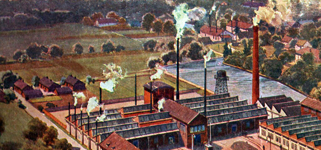 W dzisiejszym odcinku przeniesiemy się do Ustronia u schyłku XIX w. Nie były to łatwe czasy, w 1897 r. rozebrano wielki piec, a w budynku dawnej huty działała już tylko odlewnia. Nie mniej jednak w dolnym Ustroniu, w miejscu późniejszej Kuźni, nadal funkcjonował Arcyksiążęcy Zakład Budowy Maszyn, o którym wielokrotnie już pisałam. W 1900 r. fabrykę tę, widzianą z lotu ptaka, uwiecznił austriacki malarz i scenograf Karl Ludwig Prinz, którego dzieło stanowi do dziś świetne źródło badawcze. Obraz Prinza bardzo wiernie przedstawia hale dawnej kuźni, którym towarzyszy imponująca ażurowa wieża,