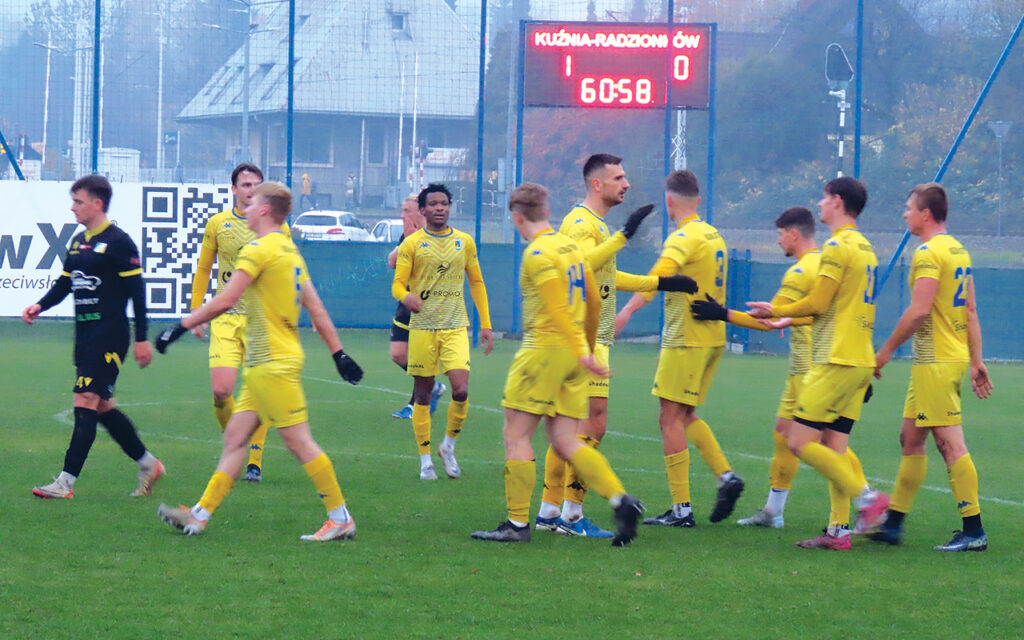 Finał jesiennej rywalizacji był emocjonujący poza boiskiem, a i na murawie sporo się działo, zwłaszcza w drugiej połowie spotkania. W 60 minucie Samuel Addo przyjął podanie tuż za połową boiska i ruszył na bramkę rywala. Biegnący obok piłkarz Radzionkowa nie był w stanie przeszkodzić napastnikowi Kuźni w oddaniu strzału. Kąt był jednak zbyt ostry, bramkarz gości wybił piłkę, która przeleciała na drugą stronę boiska. Tam dobiegł do niej Gracjan Sajdak i mocnym strzałem umieścił w siatce. W 78 minucie przed polem karnym podanie przyjął Wiktor Piejak. Stał tyłem do bramki, ale wykonał sprawny zwrot z piłką i niemal natychmiast, bez specjalnego przymierzania się oddał celny strzał.