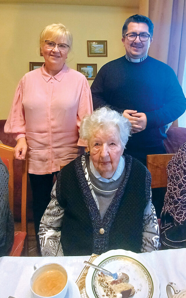 Oficjalna uroczystość odbyła się 21 listopada, a przybył na nią proboszcz Parafii Ewangelicko-Augsburskiej ksiądz Dariusz Lerch, diakon Urszula Śliwka i dyrektor Miejskiego Ośrodka Pomocy Społecznej Zdzisław Dziendziel, który przyniósł kosz łakoci i kwiaty. Przy stole z jubilatką siedzieli również córka i syn z żoną oraz przyjaciele domu. Pani Helenie apetyt dopisuje, więc kosztowała przygotowanych specjałów, a po zdmuchnięciu świeczek na torcie, skosztowała też urodzinowego ciasta. Następnego dnia życzenia składała rodzina, ale nie wszyscy mogli przyjechać. Za to na święta prawdopodobnie zjawią się w komplecie i nestorka rodu przełamie się opłatkiem z czworgiem wnucząt i siedmiorgiem prawnucząt.