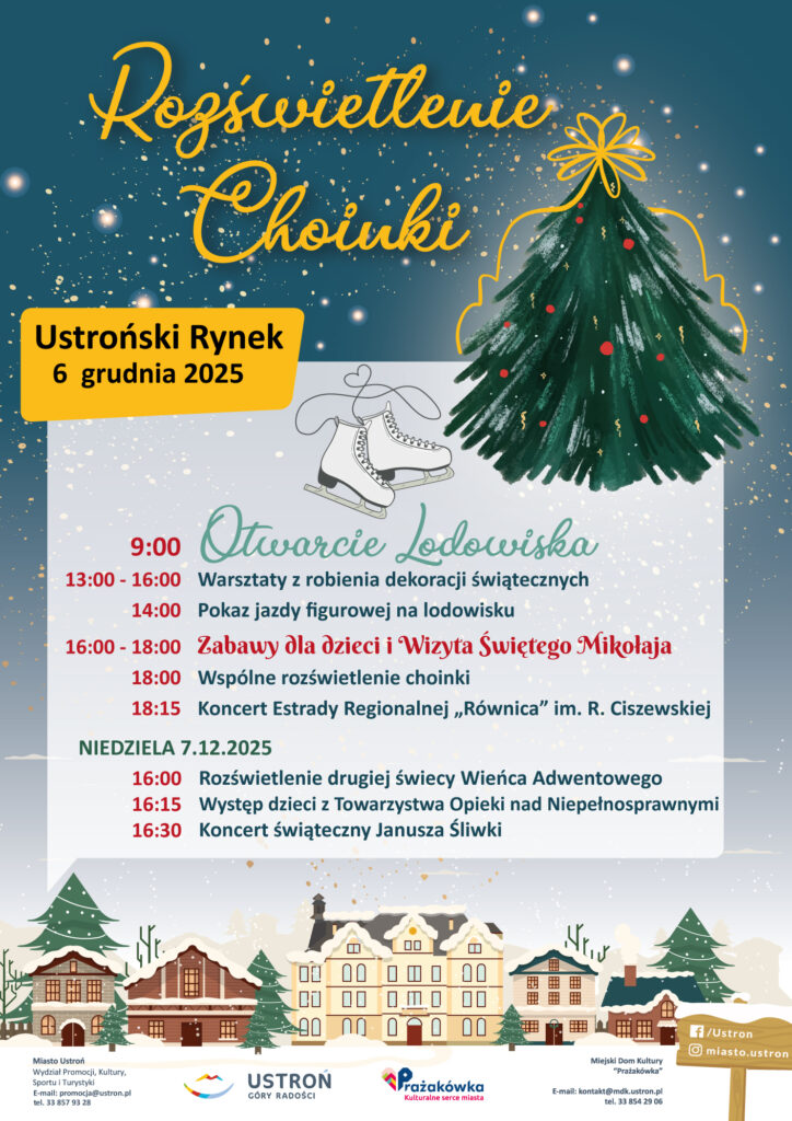 Zaloguj Witamy! Zaloguj się na swoje konto Twoja nazwa użytkownika Twoje hasło Zapomniałeś hasła? sprowadź pomoc Polityka prywatności Odzyskiwanie hasła Odzyskaj swoje hasło Twój e-mail Hasło zostanie wysłane e-mailem. Strona głównaCo nas czeka Co nas czeka 06.12.2025, godz. 9.00 – Otwarcie lodowiska i rozświetlenie choinki, Rynek Autor: Katarzyna Waliczek 2025-12-03 16 FacebookTwitterPinterestWhatsApp Udział FacebookTwitterPinterestWhatsApp Poprzedni artykuł06.12.2025, godz. 15.00 – Magiczny Las – otwarcie, KL Czantoria górna stacjaNastępny artykuł05.12.2025, godz. 19.00 – Stand-up: Adam Van Bendler Program „Ultimatum”, MDK Prażakówka (impreza biletowana) Zobacz również Miasto Pytania o przedszkole i Prażakówkę Nadesłane List do redakcji Miasto Grzybki już na górze Miasto Wieniec wrócił na scenę Ostatnie artykuły Miasto Pytania o przedszkole i Prażakówkę 2025-12-05 Nadesłane List do redakcji 2025-12-05 Miasto Grzybki już na górze 2025-12-05 Miasto Wieniec wrócił na scenę 2025-12-05 Miasto Wygrała walkę o życie teraz walczy o zdrowie 2025-12-04 Załaduj więcej