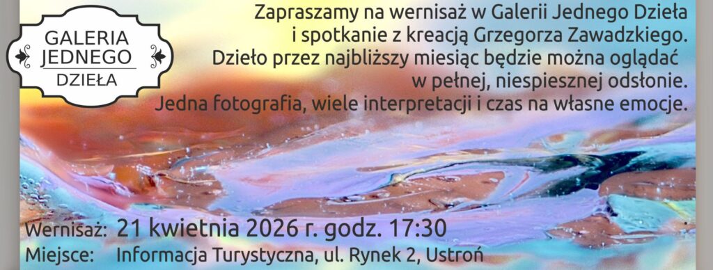 MDK Prażakówka zaprasza 21 kwietnia o godz. 17.30 na wernisaż w Galerii Jednego Dzieła i spotkanie z kreacją Grzegorza Zawadzkiego. Dzieło przez najbliższy miesiąc będzie można