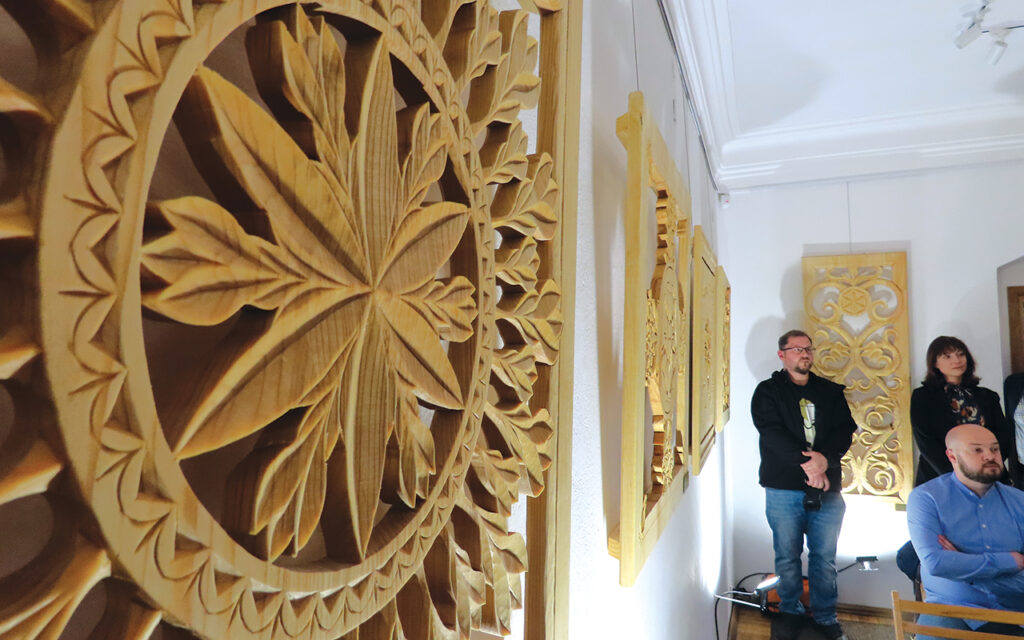 Młody rzeźbiarz pochodzący z Brennej, a obecnie mieszkający w Pogórzu przywiózł do Ustronia monumentalne prace, inspirowane szczytami górskimi. Cykl powstawał przez kilka lat i jest hołdem dla gór, które nie są dla twórcy jedynie przestrzenią geograficzną, a miejscem spotkania natury, historii i ludzkiej tożsamości. Na wystawie kontemplować można rzeźbę „Gaździna” inspirowaną Babią Górą albo „Zaczóntek” stworzony dla Baraniej Góry, jest i „Pacierz” związany z Równicą. W pięknie wydanym folderze można przeczytać wszystkie opowieści o rzeźbach, a z tej o Równicy dowiadujemy się m.in.: Punktem centralnym jest „róża luterańska”, swoisty hołd oddany historii leśnych kościołów. (…) Całość dopełniają kwiaty cieszynianki, okalające symbol róży – pięknego endemitu występującego tylko w naszym regionie. Jako element uzupełniający narożniki pracy wzbogaciłem snycerskim odpowiednikiem hoczka.